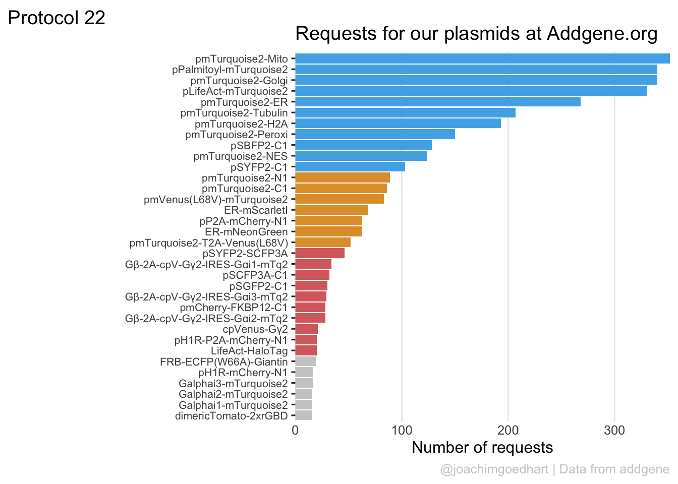 This looks pretty good already. Now let’s change the order of the fluorescent proteins to their order in the plot:
