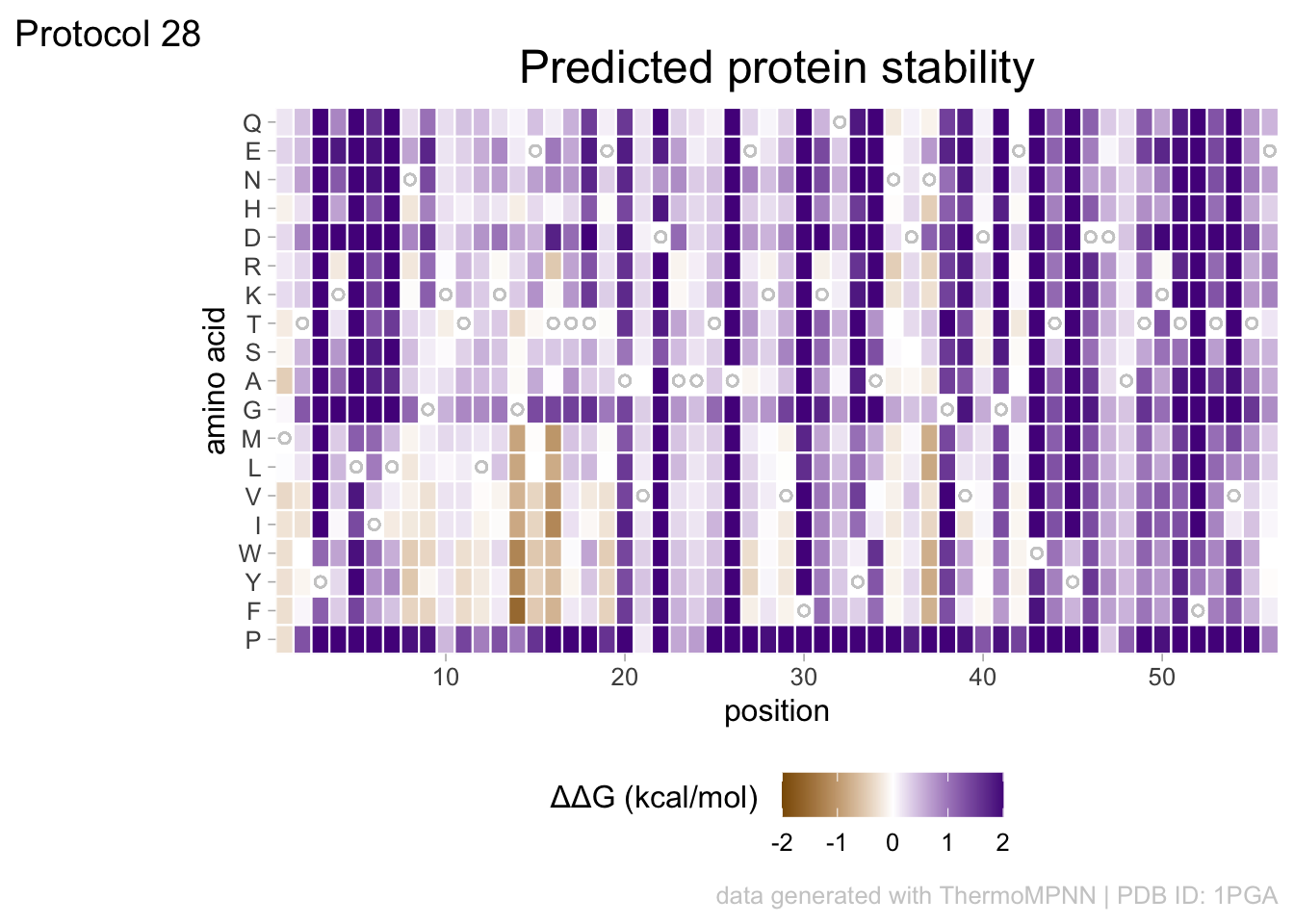 caption = "data generated with ThermoMPNN | PDB ID: 1PGA",